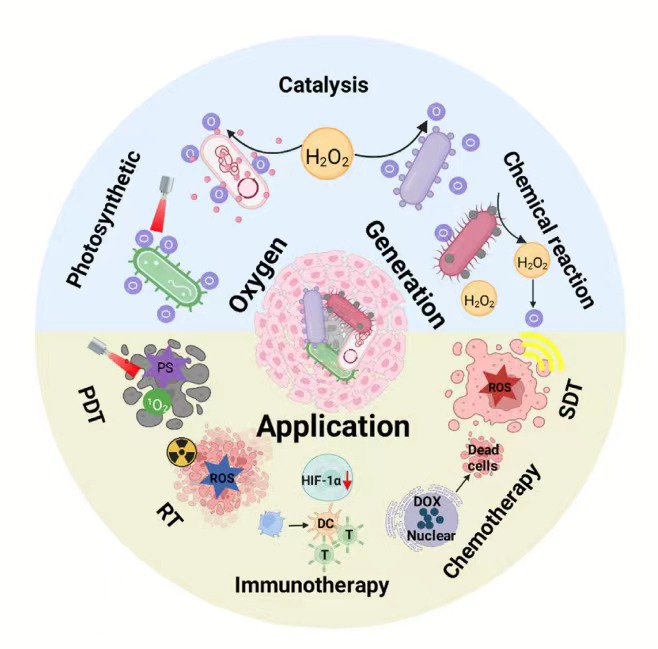 Han D, Zhang X, Ma Y, Yang X, Li Z. The development of live microorganism-based oxygen shuttles for enhanced hypoxic tumor therapy. Mater Today Bio. 2022 Dec 10;18:100517. doi: 10.1016/j.mtbio.2022.100517. PMID: 36578285; PMCID: PMC9791452.